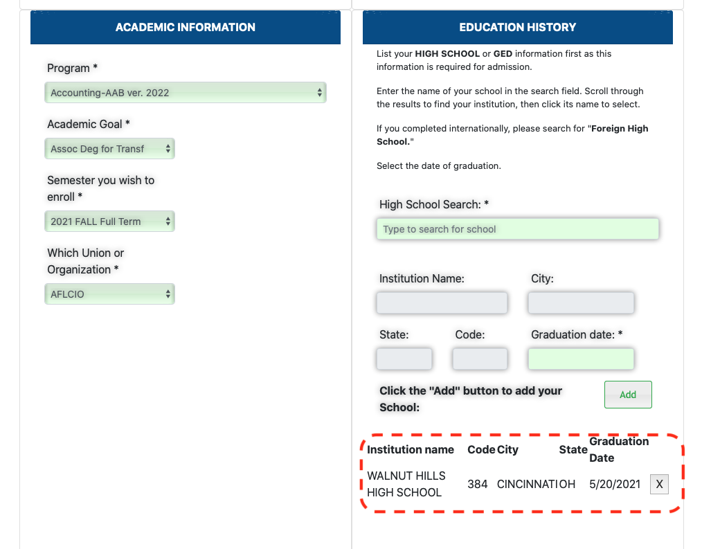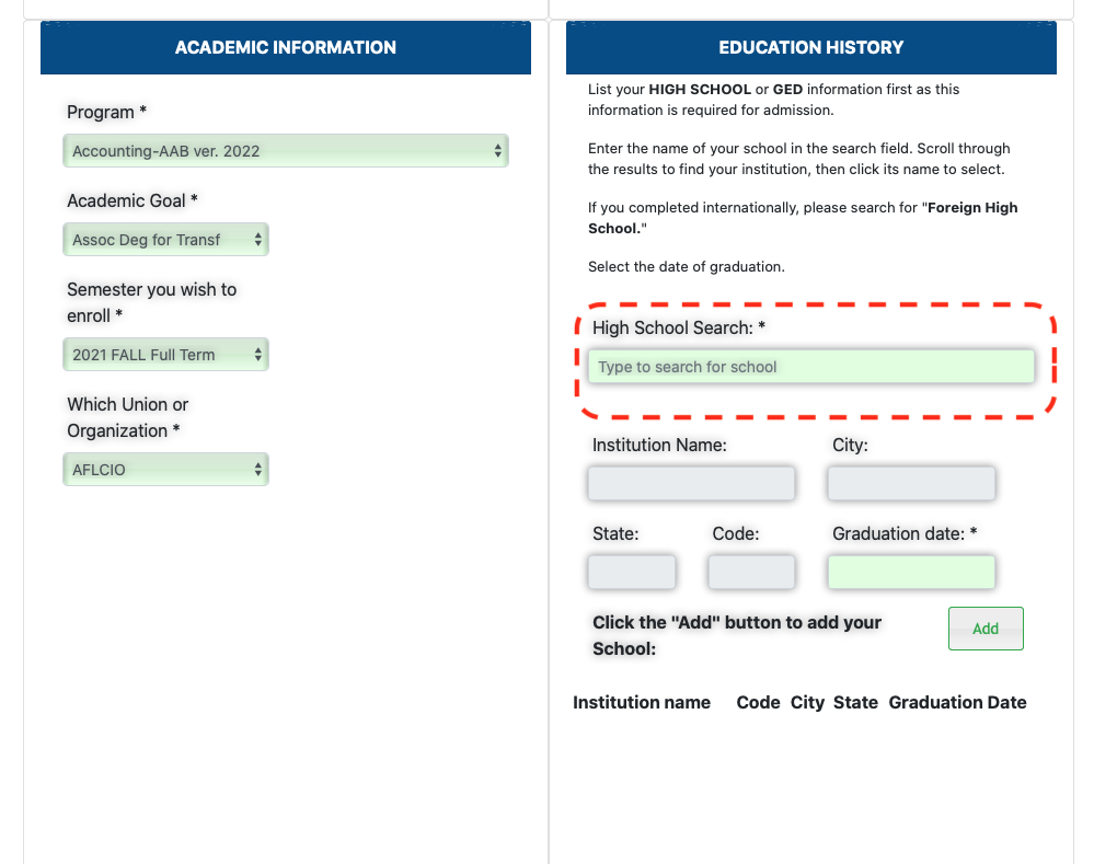Adding your Education History to the Enrollment Application
