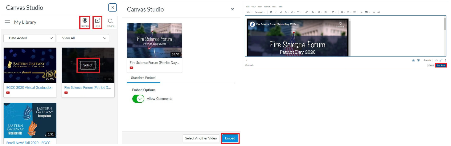 and then click "Embed". Once the video is embedded to the reply click on "Post Reply". If you choose to record a new video please