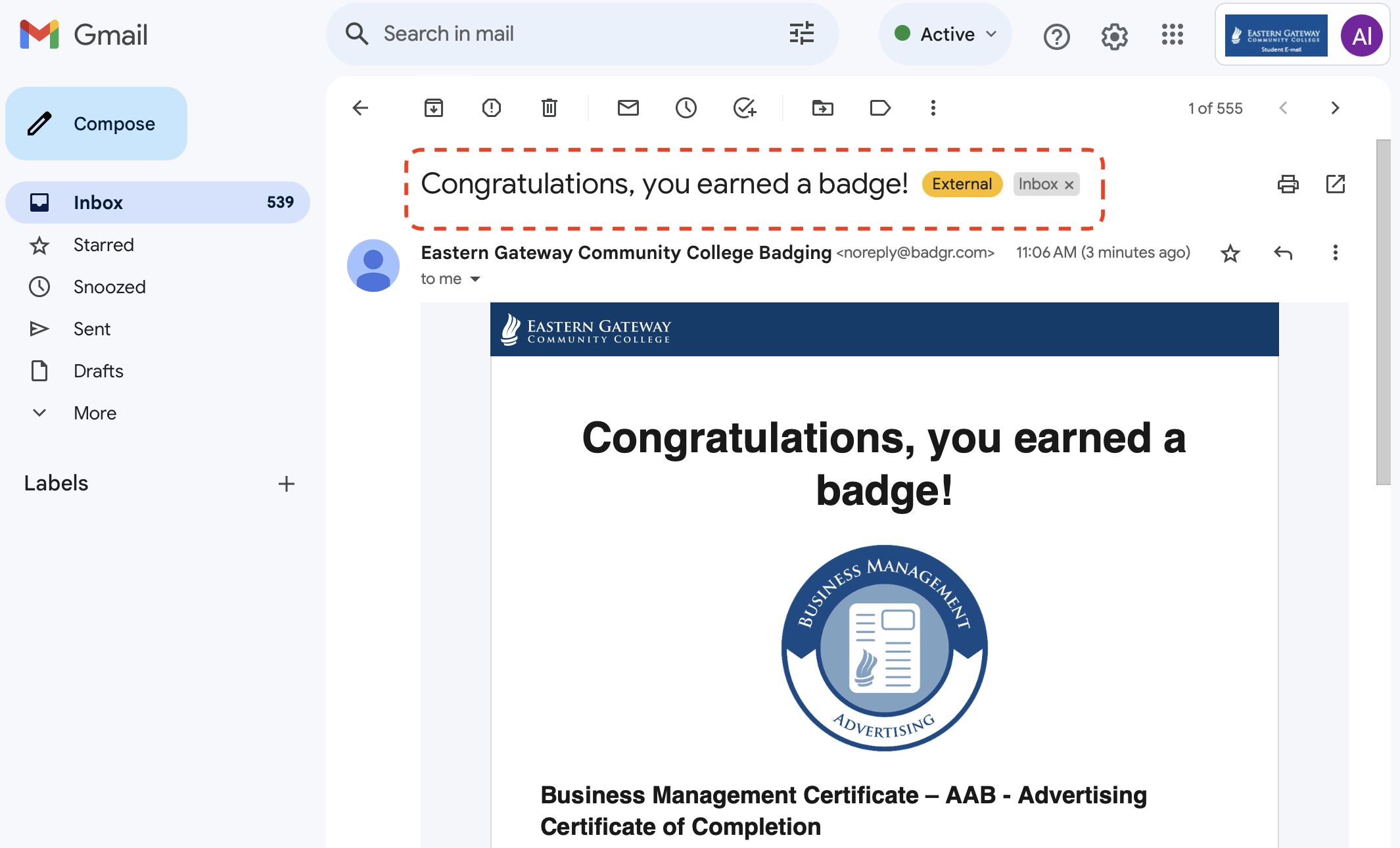 1) Login to your EGCC school email account and look for an email from EGCC Badging.