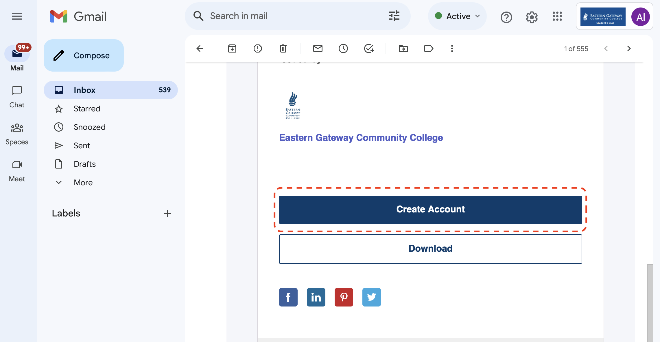 2) Read through the email for instructions and then click the button to 'Create Account' near the bottom of the email.