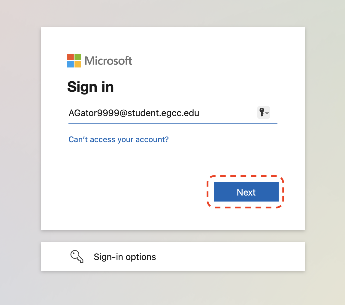 To enable MFA on your student account, begin by accessing the Microsoft account security settings by logging in with your EGCC student email account