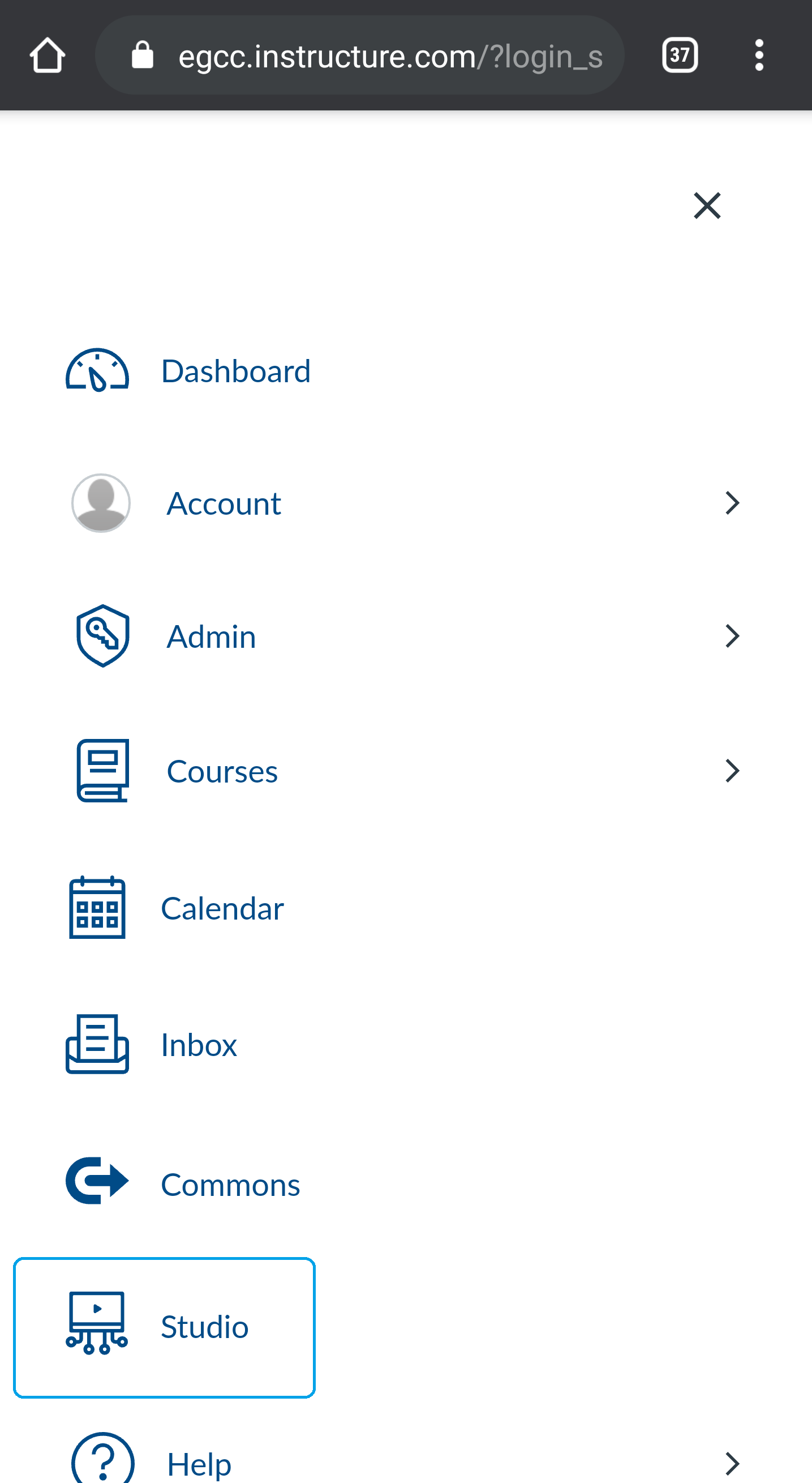 Once logged in, tap on the options icon on the top left, and select Studio.