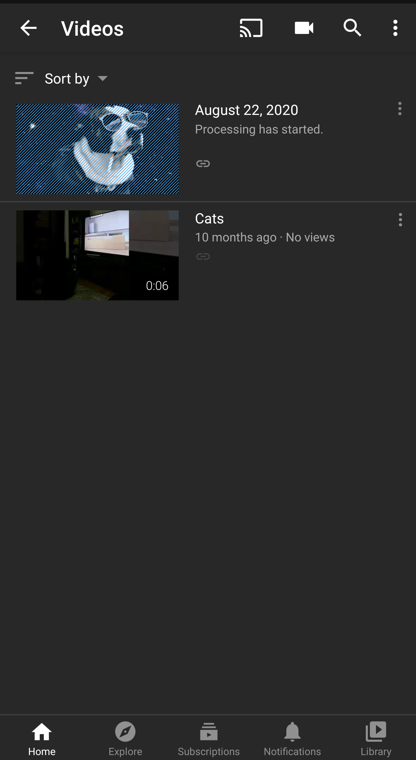 You will be taken to a view of your uploaded videos, and YouTube will overlay the upload / processing progress over your new video. Once it is done with processing, you will be able to open it.