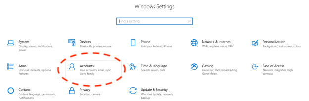 First open the Settings on your PC and click on the Accounts button shown in this screenshot.