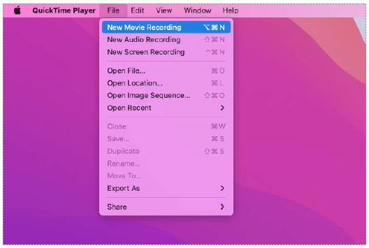 Step 2: From the File menu, choose New Movie Recording.