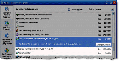 - Click on the Java, JRE, or J2SE program to highlight/select it.