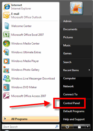 - Click Control Panel. For example: