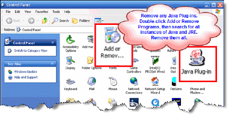 - Find all references to Java, JRE, and J2SE and remove each one.