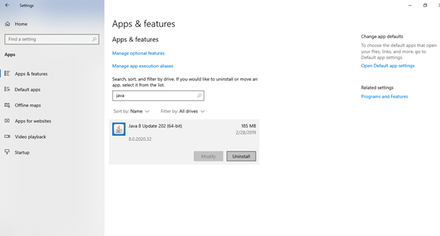 Step 1. Check your computer to see all versions of Java installed and uninstall them.