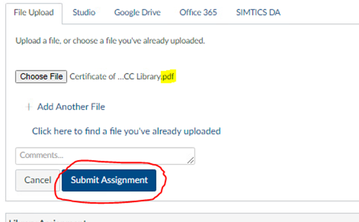 For the Library Tutorial Assignments you will be required to submit PDFs. Below is a guide on how to submit these assignments.