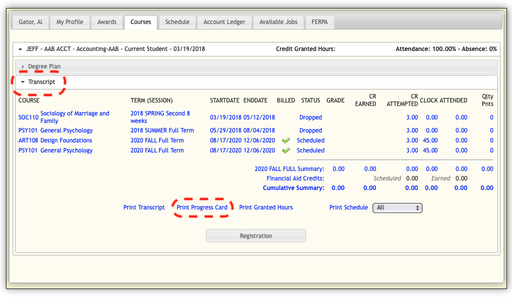 Printing an Overall Unofficial Transcript