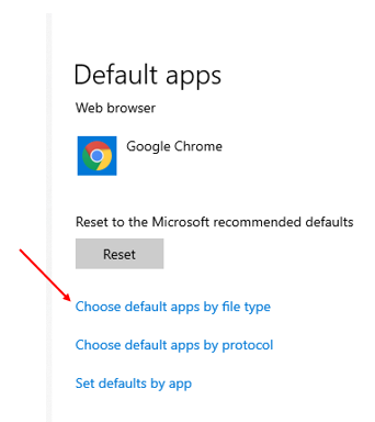 5. To choose default app by file type, scroll down and select Choose default apps by file type.