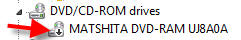 Disabled Device: Black Down Arrow on the device icon.